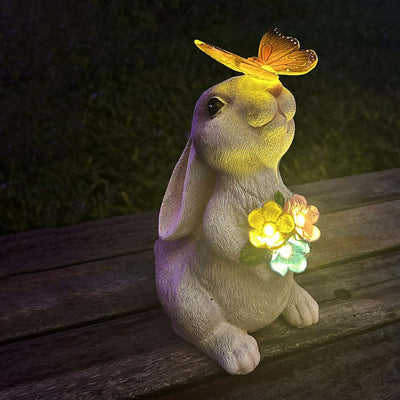 Solar Garden Statues Outdoor Decor- Yard Decorations For Patio, Balcony, Backyard, Lawn Ornaments - Rabbit Figurines With LED Light- Unique Birthday House Warming Gifts For Women, Mom, Grandma Halloween Decorations Room Home Decor Halloween Decor